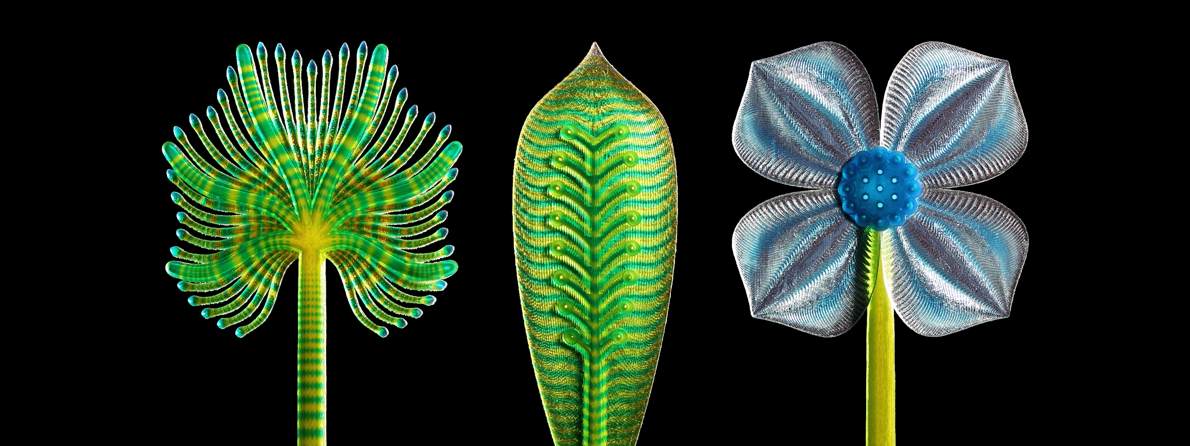 The Polyphytes explore a new feature of PolyJet technology - Liquid Print. This allows the creation of airtight cavities filled with liquid inside an object. Previously, such cavities would have been filled with support material and difficult to clean out.